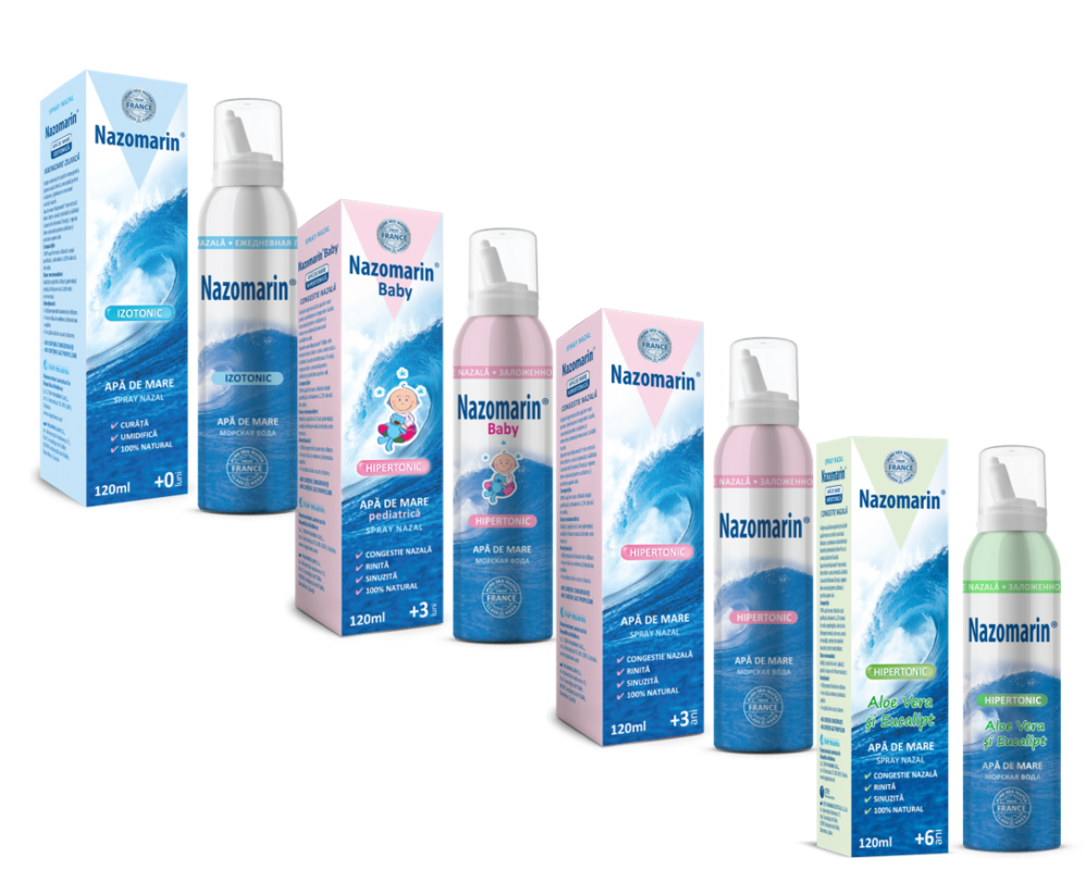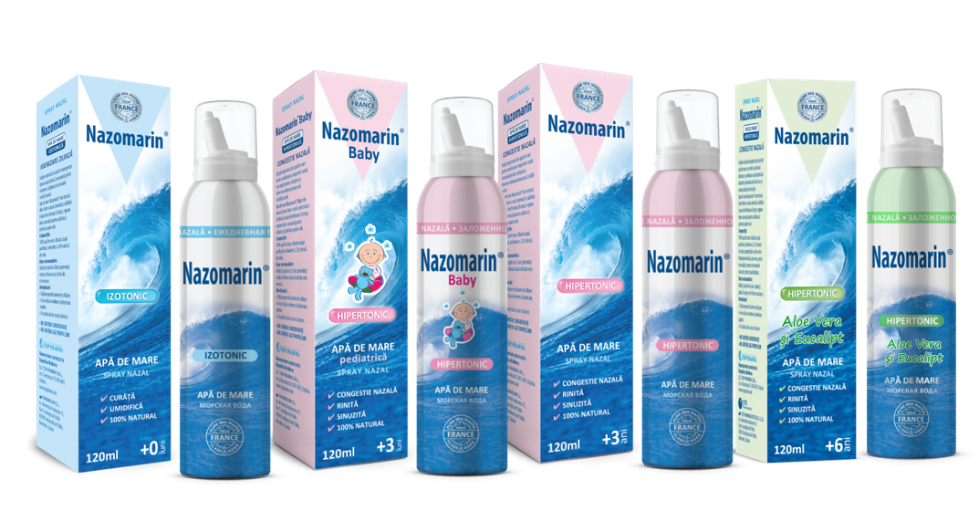 Nazomarin® Baby Hipertonic si Nazomarin® Hipertonic datorită soluției saline de 2,2%, atrage excesul de apă din mucoasa nazală, reducând inflamația, congestia și presiunea asupra sinusurilor.Ajută la combaterea infecțiilor